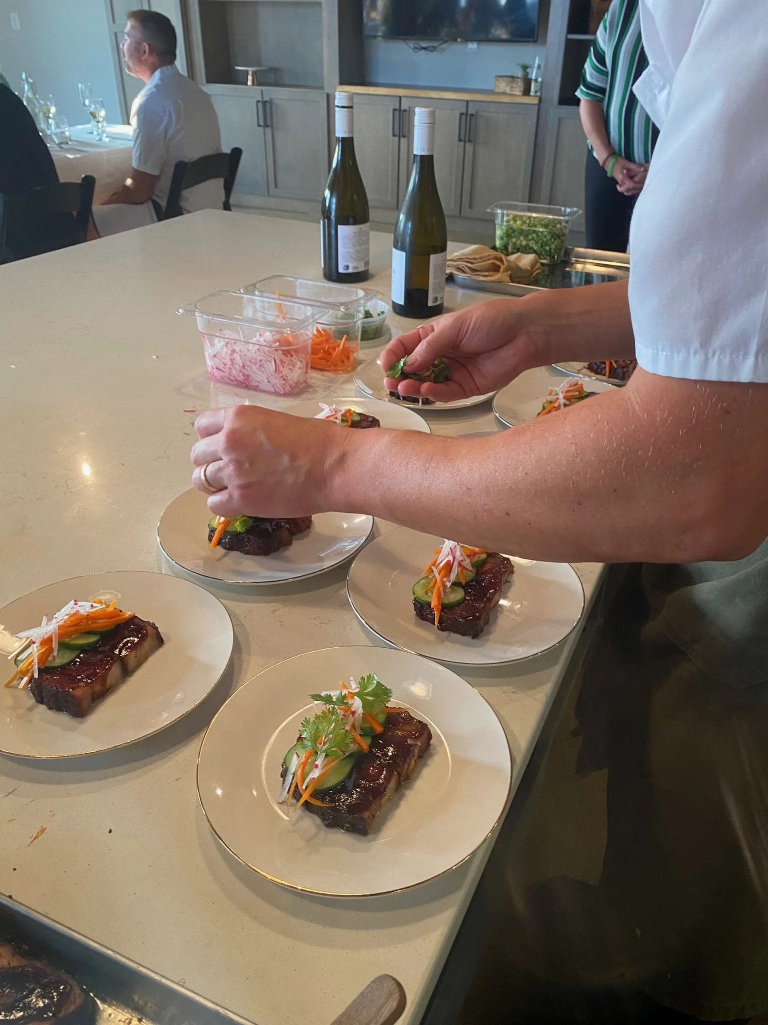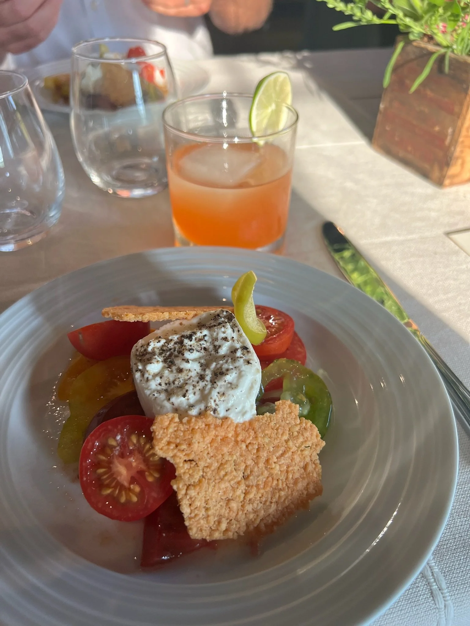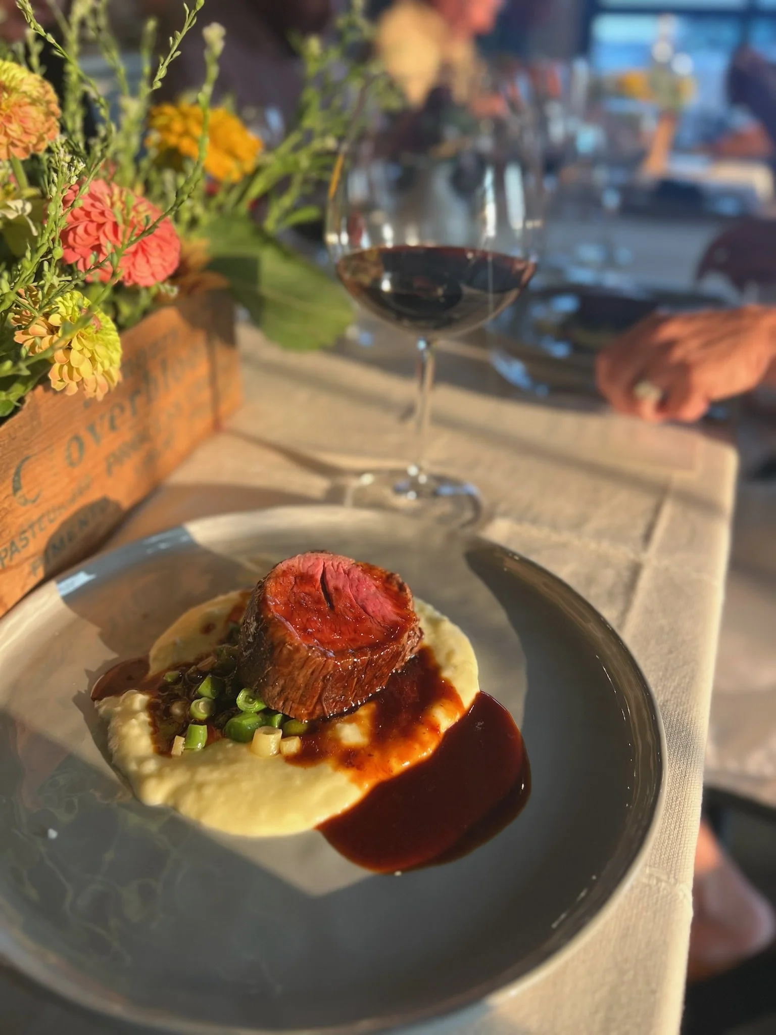 Hosted at the farm, music playing in the background, a few steps away from our Chef’s preparing their meal, a small group of 5 couples hung out with us for the evening. They spend their time chatting, taking pictures of each meal they’re served (see pictures below - hello no filter!), and enjoying a meal they definitely aren’t cooking at home.