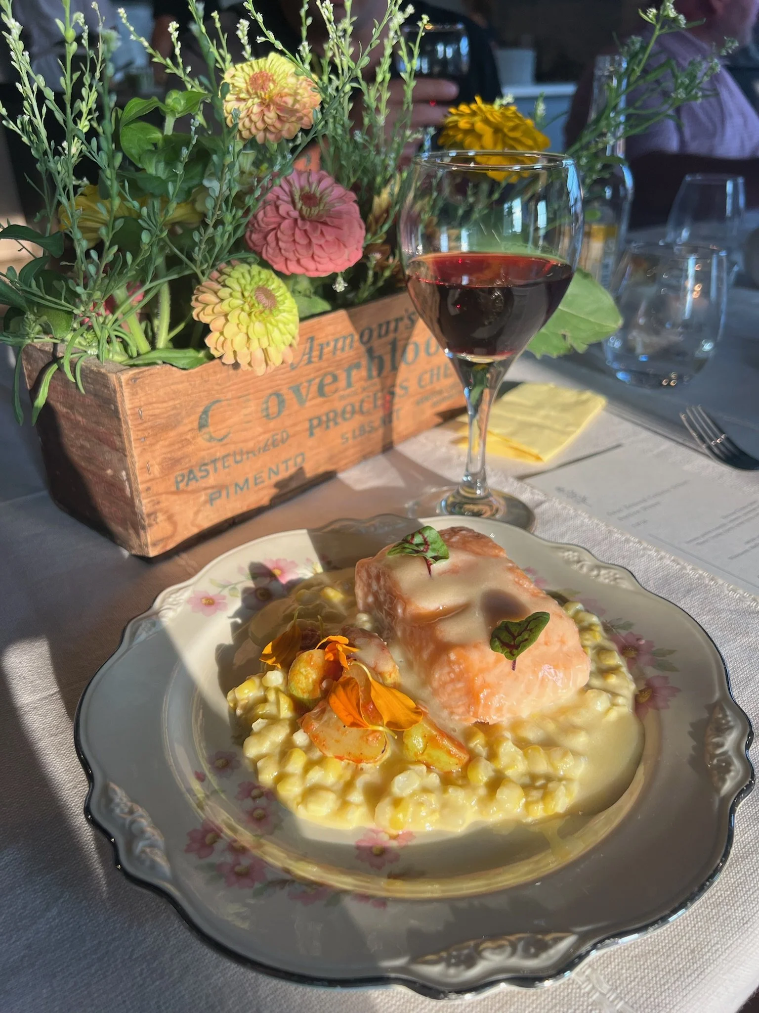 creamed corn, summer squash, marigolds