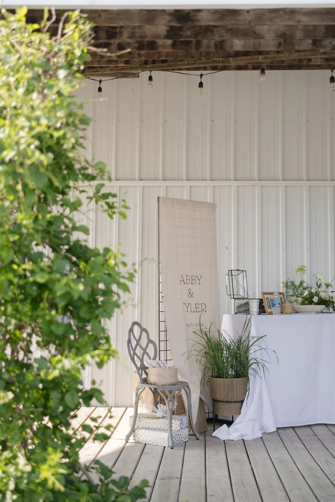 The Barn and surrounding spaces offer versatile, inviting settings for your ceremony, celebration, and dancing, with original beams, a charming porch with market lights - all ready to be shaped to your vision.
